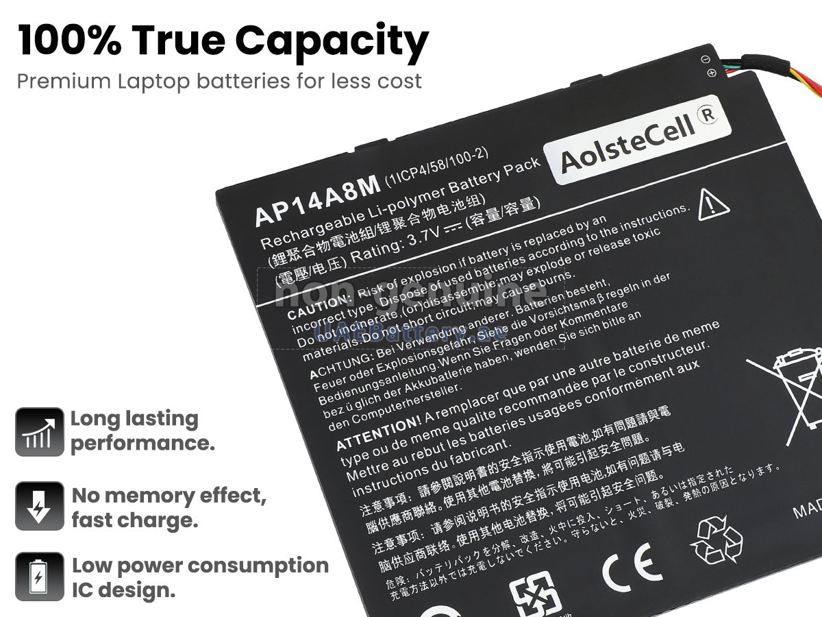تتوافق البطارية Acer SWITCH 10 SW5-012-10QZ المستبدلة مع مواصفات الشركة المصنعة الأصلية ومتوافقة مع جهاز Acer الخاص بك بنسبة١٠٠٪، ويمكن أن تنافس أو تتجاوز بطارية SWITCH 10 SW5-012-10QZ الأصلية في الأداء وتجرية الإستخدام.