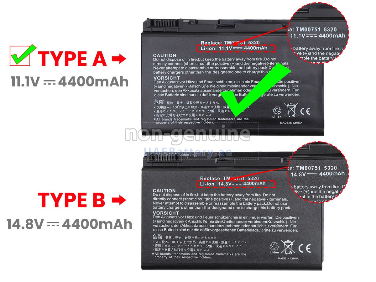 جواب: جميع البطاريات التي تباع على UAEBattery هي بطاريات مستبدل لـOEM. ويستخدم خلايا البطارية والرقائق الذكية من العلامة التجارية الأصلية، ويمكن أن تنافس أو تتجاوز البطارية الأصلية في الأداء وتجرية الإستخدام. وهكذا يتم التخلص من قسط العلامة التجارية ولا تتأثر الجودة. في الواقع، يتم أيضا عملية التجميع لبطارية TravelMate 5520-5308 الأصلية باستخدام ملحقات من الطرف الثالث المختلفة، وقامت بتثبيت علامتها التجارية الخاصة بها على البطارية قبل البيع فقط. ففي UAEBattery يمكنكم شراء منتجات عالية الجودة بأسعار معقولة!