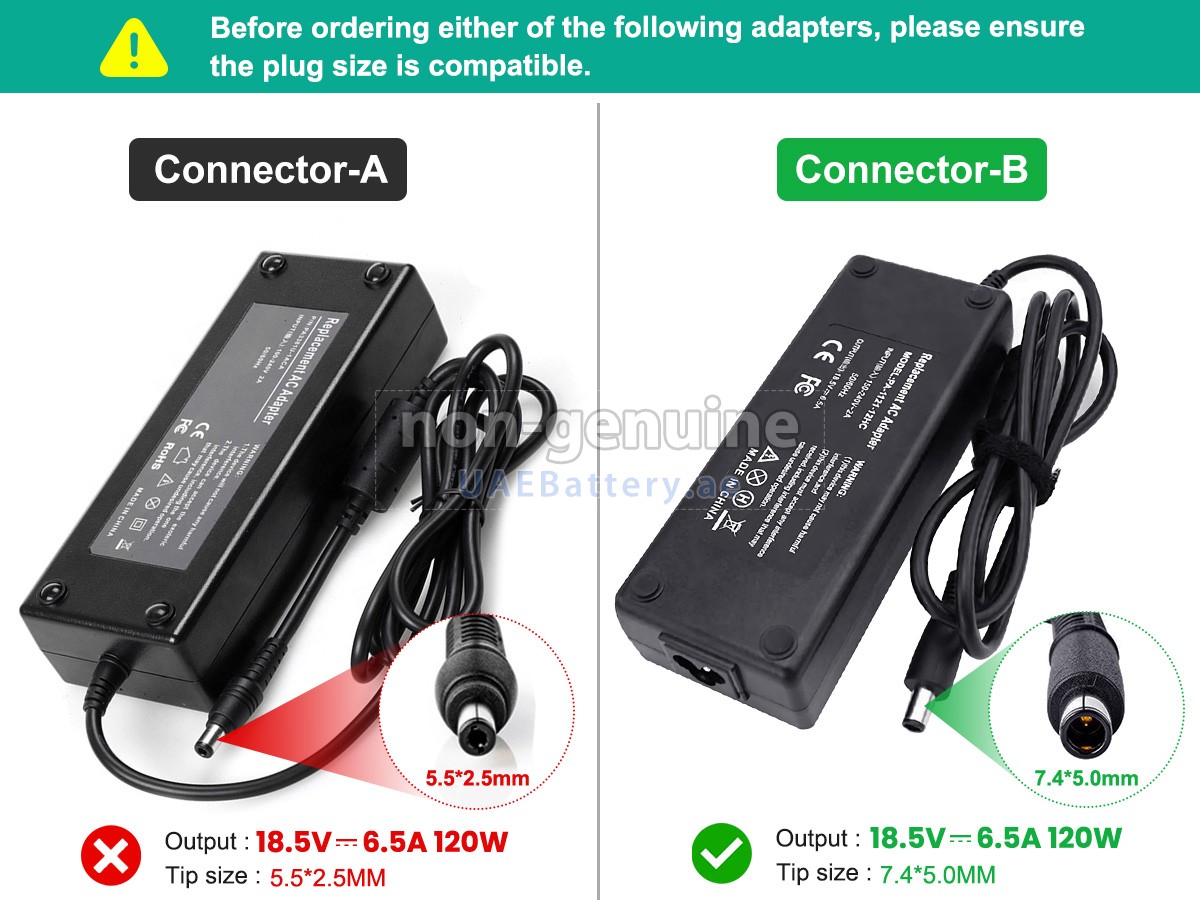 جواب: ركز فقط على معلمات الإخراج ونوع الموصل (أو الحجم). يجب أن يكون جهد الإخراج هو نفسه جهد المحول الأصلي أو في حدود 1 فولت، ويجب أن يكون تيار الإخراج أكبر قليلاً من أو يساوي محول التيار المتردد الأصلي لجهاز HP 609941-001. أما بالنسبة لنوع الموصل، فتأكد من إمكانية توصيله بمنفذ الشحن بجهازك. إذا لم تتمكن من تحديد حجم الموصل، فيرجى الاتصال بنا لإخبارنا بطراز جهازك.