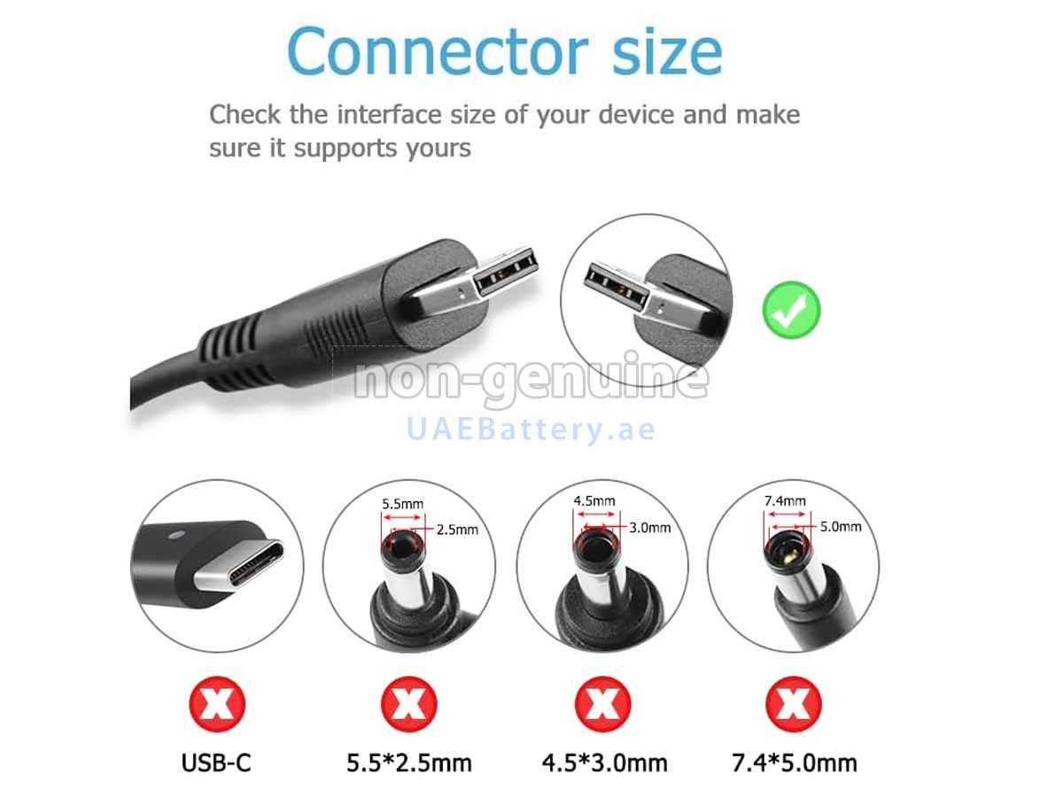 جواب: ركز فقط على معلمات الإخراج ونوع الموصل (أو الحجم). يجب أن يكون جهد الإخراج هو نفسه جهد المحول الأصلي أو في حدود 1 فولت، ويجب أن يكون تيار الإخراج أكبر قليلاً من أو يساوي محول التيار المتردد الأصلي لجهاز MSI CREATOR Z17. أما بالنسبة لنوع الموصل، فتأكد من إمكانية توصيله بمنفذ الشحن بجهازك. إذا لم تتمكن من تحديد حجم الموصل، فيرجى الاتصال بنا لإخبارنا بطراز جهازك.