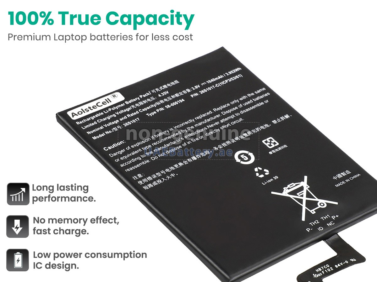 اجتازت كل بطارية Amazon KINDLE PAPERWHITE 4 (WI-FI ONLY) مستبدلة سلسلة من شهادات السلامة مثل ECAS، CE، UL والخ، وبالإضافة إلى ذلك، يلزم أن تخضع لسلسلة من الإختبارات الصارمة قبل خروجها من المصنع لحماية استخدامكم الآمن!