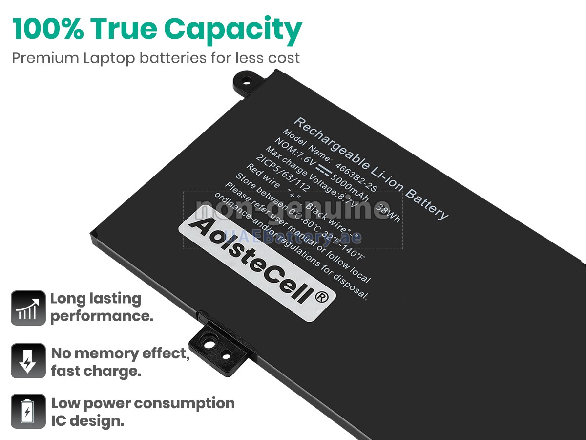 تستخدم كل بطارية AolsteCell 4663B2-2S مستبدلة الخلايا من بطاريات الليثيوم أيون عالية الجودة من الدرجة A+ من الشركات المصنعة الأصلية مثل Samsung وPanasonic وLG والخ، ورقائق لوحة الدوائر الذكية ومواد ABS+PC الصديقة للبيئة مع وظائف مقاومة درجات الحرارة العالية ومقاومة التآكل، مما يمكن ضمان الأداء العالي وتحسين الأمان بشكل كبير في نفس الوقت.