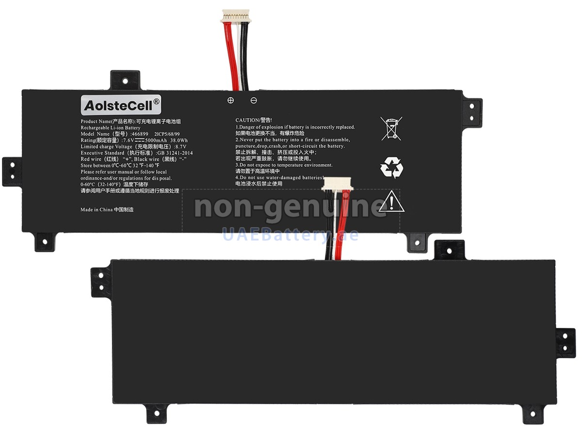 تتوافق البطارية AolsteCell 466899 المستبدلة مع مواصفات الشركة المصنعة الأصلية ومتوافقة مع جهاز AolsteCell الخاص بك بنسبة١٠٠٪، ويمكن أن تنافس أو تتجاوز بطارية 466899 الأصلية في الأداء وتجرية الإستخدام.
