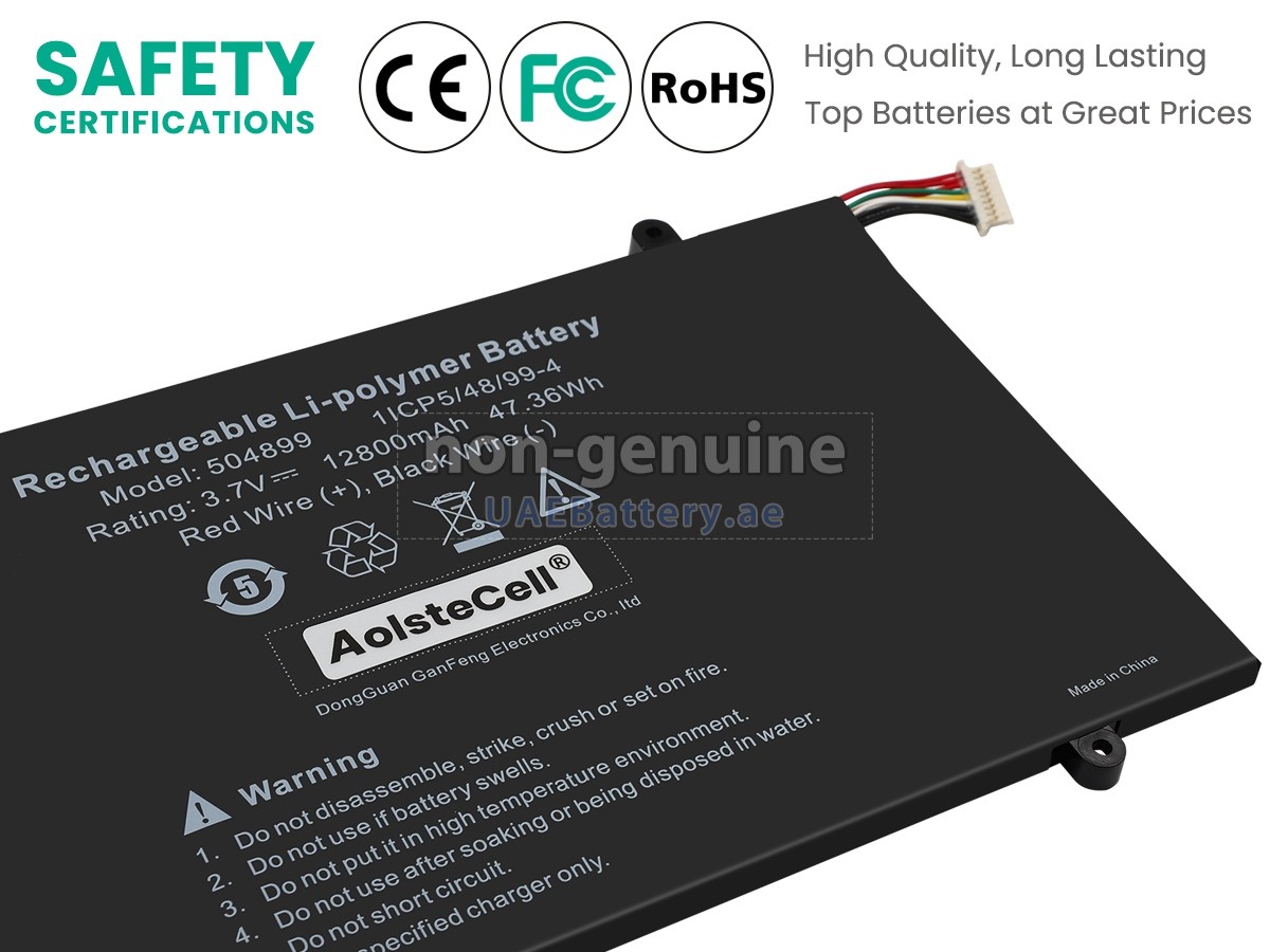 تتوافق البطارية AolsteCell 504899 المستبدلة مع مواصفات الشركة المصنعة الأصلية ومتوافقة مع جهاز AolsteCell الخاص بك بنسبة١٠٠٪، ويمكن أن تنافس أو تتجاوز بطارية 504899 الأصلية في الأداء وتجرية الإستخدام.