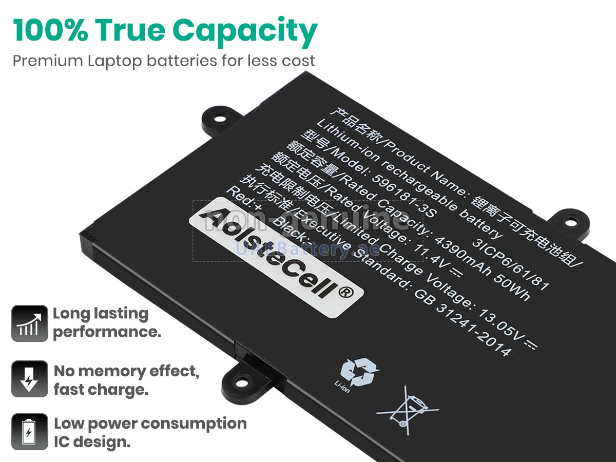 تتوافق البطارية AolsteCell 596181-3S المستبدلة مع مواصفات الشركة المصنعة الأصلية ومتوافقة مع جهاز AolsteCell الخاص بك بنسبة١٠٠٪، ويمكن أن تنافس أو تتجاوز بطارية 596181-3S الأصلية في الأداء وتجرية الإستخدام.