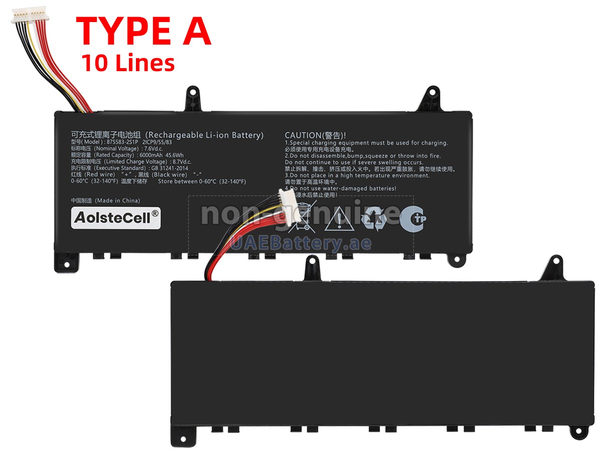 تتوافق البطارية AolsteCell 875583-2S1P المستبدلة مع مواصفات الشركة المصنعة الأصلية ومتوافقة مع جهاز AolsteCell الخاص بك بنسبة١٠٠٪، ويمكن أن تنافس أو تتجاوز بطارية 875583-2S1P الأصلية في الأداء وتجرية الإستخدام.
