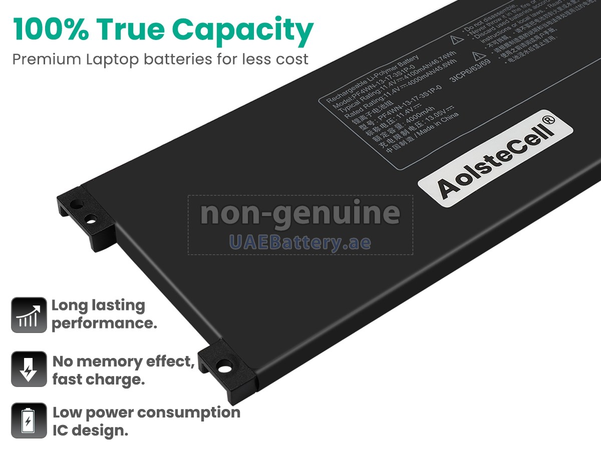 جواب: جميع البطاريات التي تباع على UAEBattery هي بطاريات مستبدل لـOEM. ويستخدم خلايا البطارية والرقائق الذكية من العلامة التجارية الأصلية، ويمكن أن تنافس أو تتجاوز البطارية الأصلية في الأداء وتجرية الإستخدام. وهكذا يتم التخلص من قسط العلامة التجارية ولا تتأثر الجودة. في الواقع، يتم أيضا عملية التجميع لبطارية PF4WN-13-17-3S1P-0 الأصلية باستخدام ملحقات من الطرف الثالث المختلفة، وقامت بتثبيت علامتها التجارية الخاصة بها على البطارية قبل البيع فقط. ففي UAEBattery يمكنكم شراء منتجات عالية الجودة بأسعار معقولة!