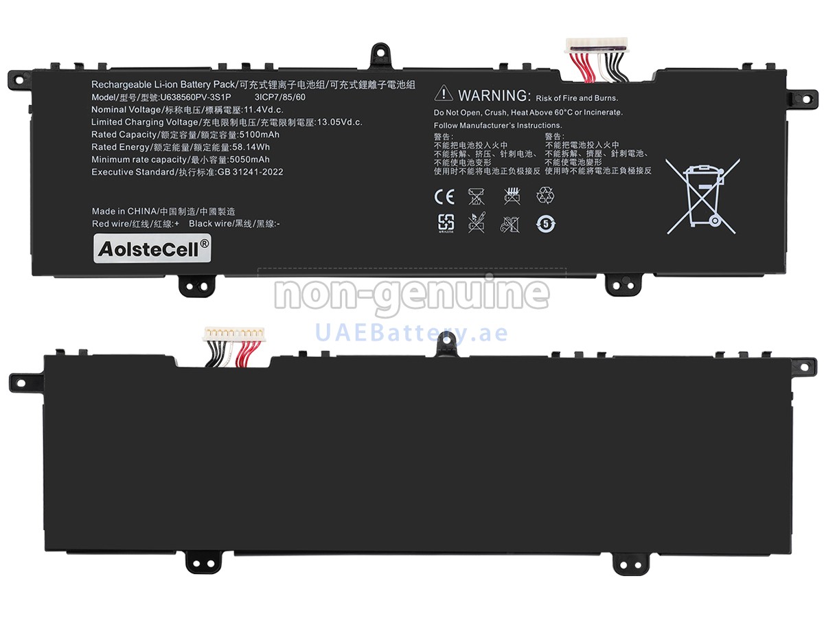 2قم بمقارنة الجهد والسعة للبطارية مع بطارية AolsteCell U638560PV-3S1P(3ICP7/65/80)، وتحقق من أن واجهة البطارية وشكلها هما نفس الصور الموجودة على موقعنا.
