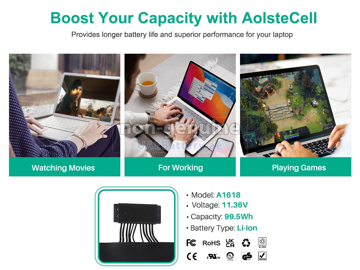 تتميز هذه البطارية Apple MacBook Pro 15.4 inch Retina A1398(Mid 2015) المستبدلة بالمزايا التالية: