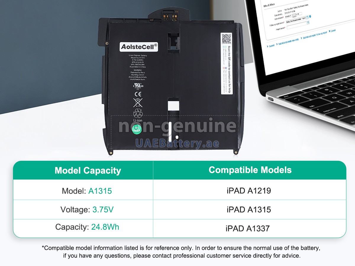 على الرغم من انخفاض معدل فشل بطارية لـUAEBattery ، إلا أننا ما زلنا نقدم ضمانا لمدة عام لبطارية Apple MB294LL/A. خلال فترة الضمان، طالما كانت هناك مشكلة في البطارية، يمكنك الإتصال بنا لتقديم المعلومات لنا، وسنقدم لكم خدمة الإستبدال أو الإصلاح حسب الوضع. يرجى النقر على ”سياسة الضمان“ للحصول على المزيد من التفاصيل.