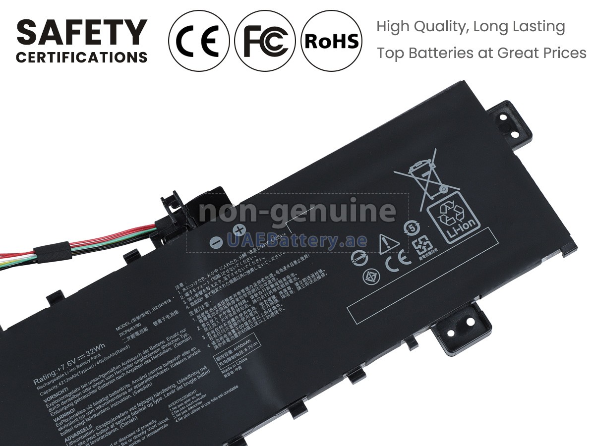 اجتازت كل بطارية Asus VivoBook 17 R712DK مستبدلة سلسلة من شهادات السلامة مثل ECAS، CE، UL والخ، وبالإضافة إلى ذلك، يلزم أن تخضع لسلسلة من الإختبارات الصارمة قبل خروجها من المصنع لحماية استخدامكم الآمن!