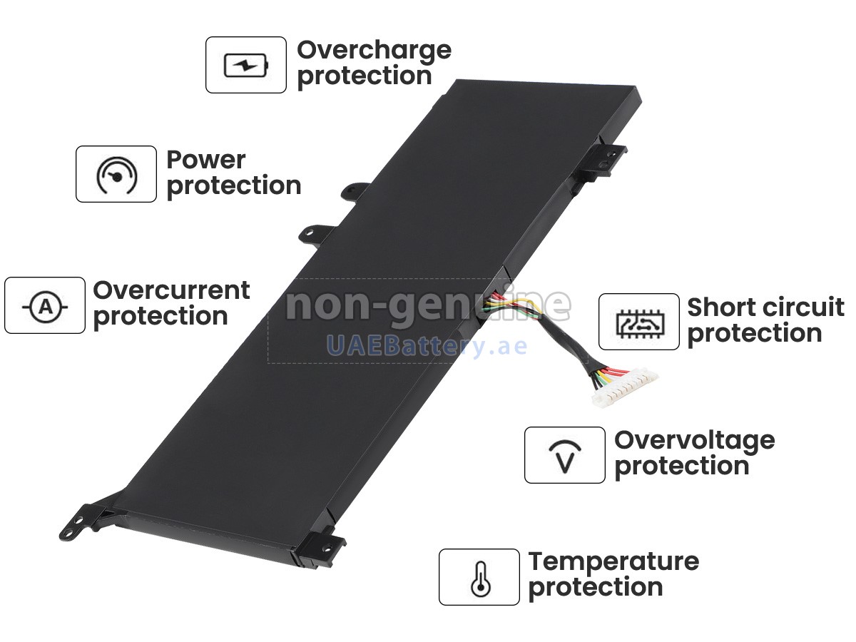 اجتازت كل بطارية Asus VivoBook S409DA مستبدلة سلسلة من شهادات السلامة مثل ECAS، CE، UL والخ، وبالإضافة إلى ذلك، يلزم أن تخضع لسلسلة من الإختبارات الصارمة قبل خروجها من المصنع لحماية استخدامكم الآمن!