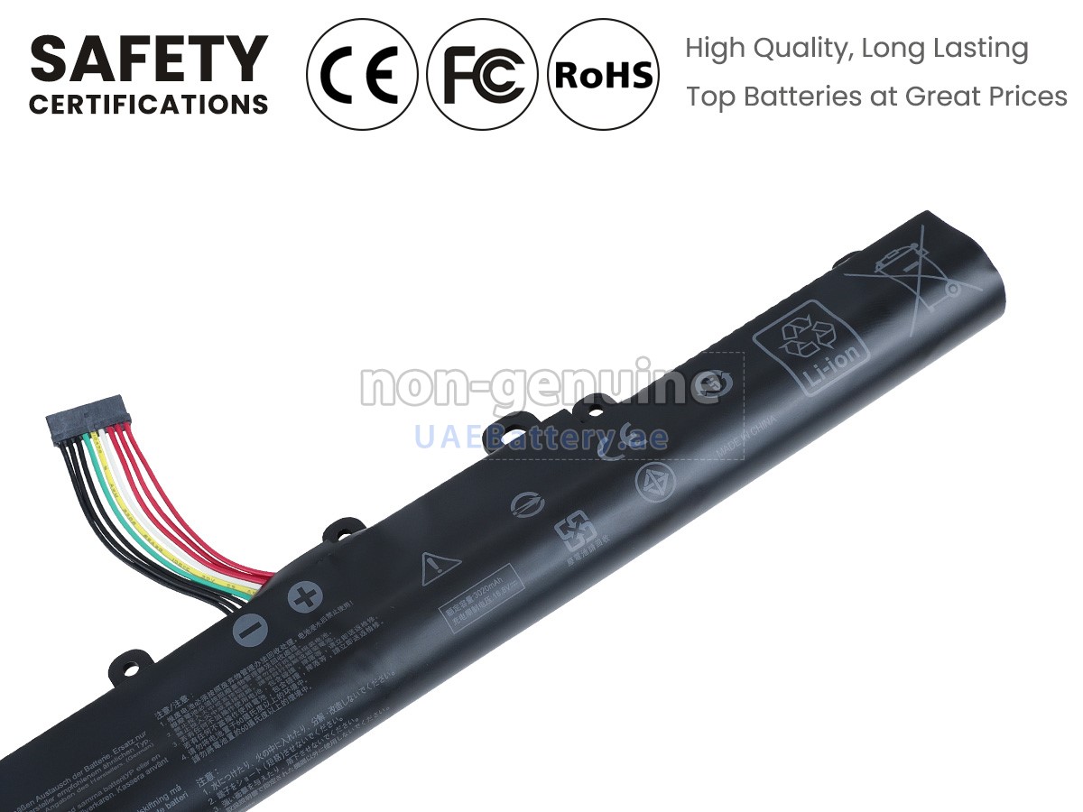 اجتازت كل بطارية Asus X440FA مستبدلة سلسلة من شهادات السلامة مثل ECAS، CE، UL والخ، وبالإضافة إلى ذلك، يلزم أن تخضع لسلسلة من الإختبارات الصارمة قبل خروجها من المصنع لحماية استخدامكم الآمن!