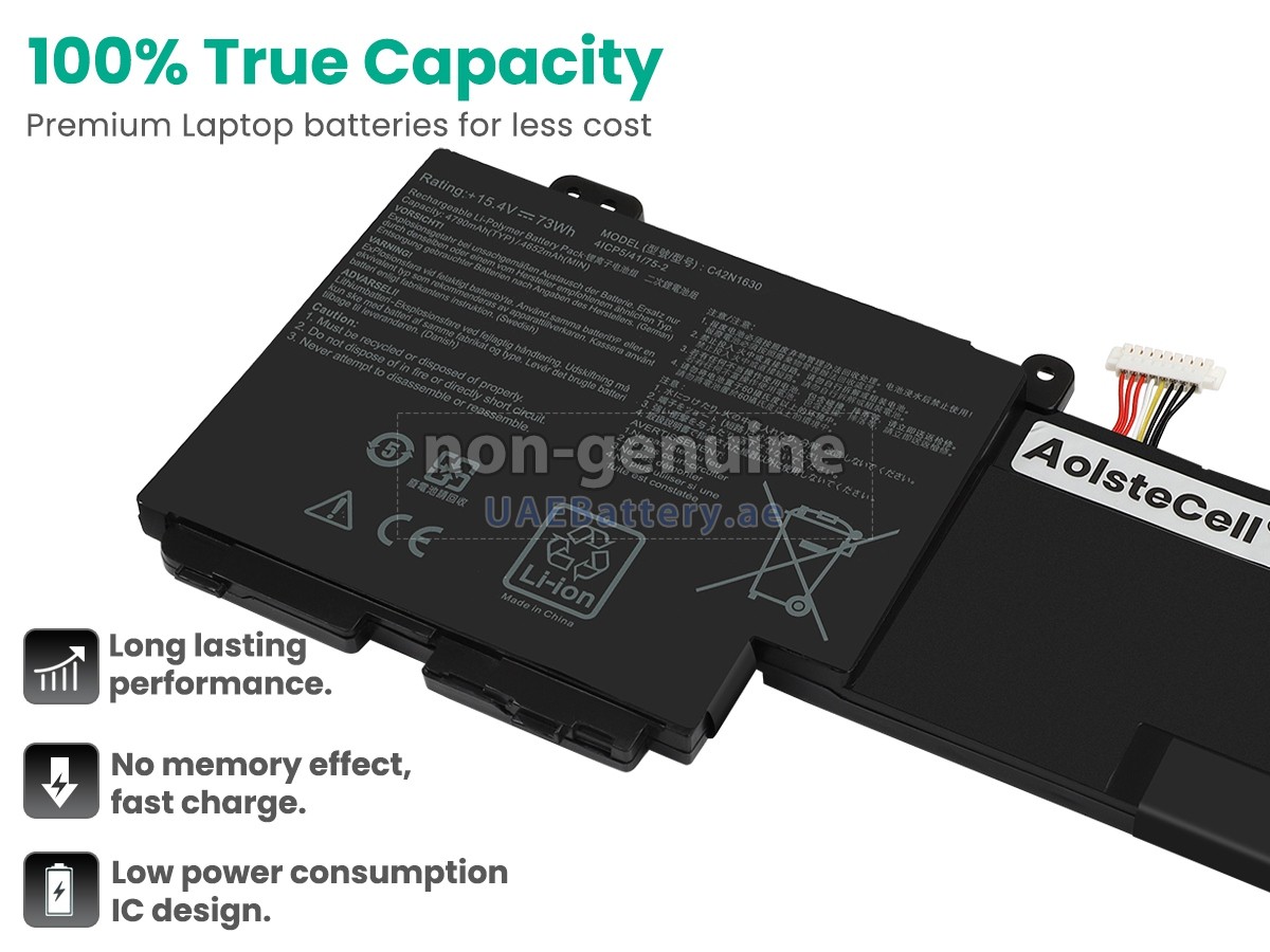 جواب: جميع البطاريات التي تباع على UAEBattery هي بطاريات مستبدل لـOEM. ويستخدم خلايا البطارية والرقائق الذكية من العلامة التجارية الأصلية، ويمكن أن تنافس أو تتجاوز البطارية الأصلية في الأداء وتجرية الإستخدام. وهكذا يتم التخلص من قسط العلامة التجارية ولا تتأثر الجودة. في الواقع، يتم أيضا عملية التجميع لبطارية ZenBook Pro UX550VE-DB71T الأصلية باستخدام ملحقات من الطرف الثالث المختلفة، وقامت بتثبيت علامتها التجارية الخاصة بها على البطارية قبل البيع فقط. ففي UAEBattery يمكنكم شراء منتجات عالية الجودة بأسعار معقولة!