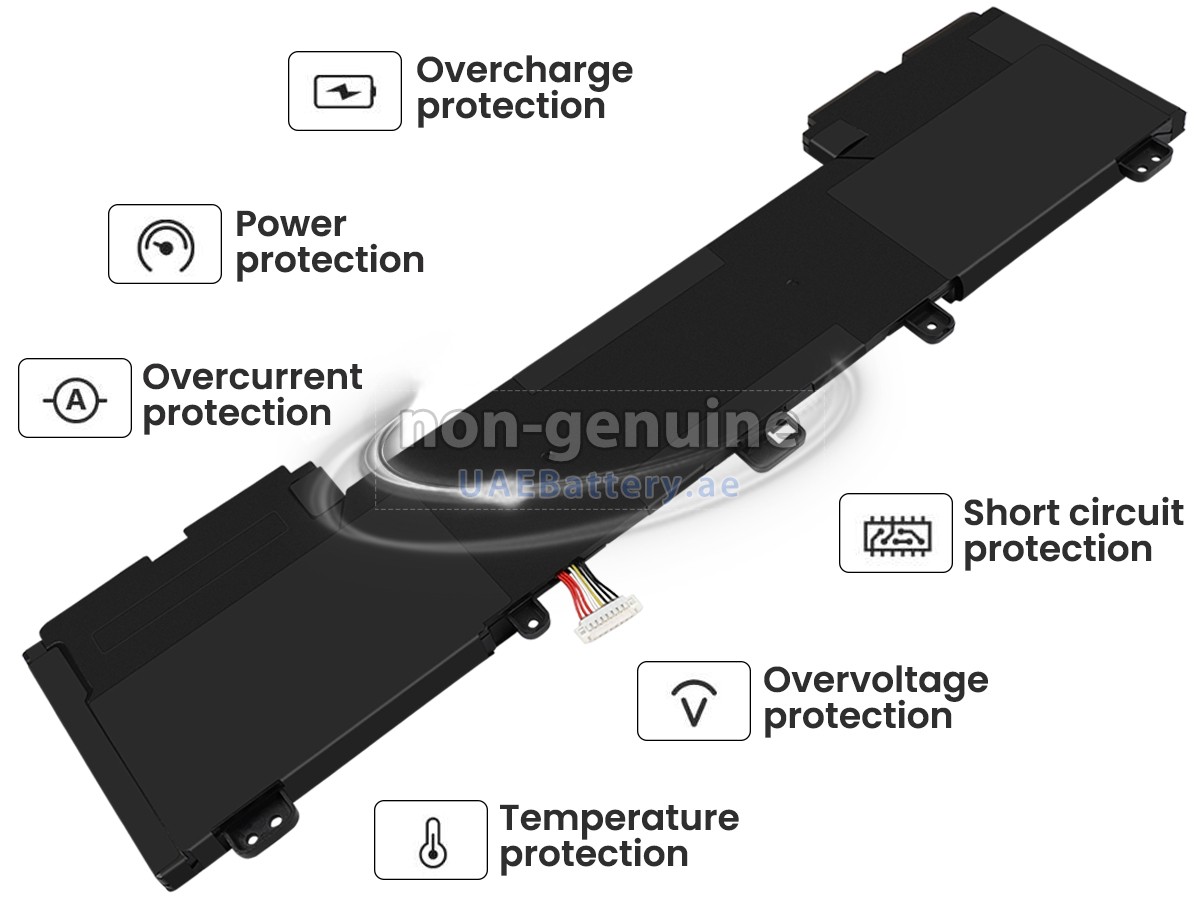اجتازت كل بطارية Asus ZenBook Pro UX550VE-DB71T مستبدلة سلسلة من شهادات السلامة مثل ECAS، CE، UL والخ، وبالإضافة إلى ذلك، يلزم أن تخضع لسلسلة من الإختبارات الصارمة قبل خروجها من المصنع لحماية استخدامكم الآمن!