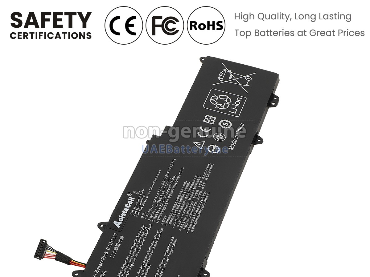 اجتازت كل بطارية Asus ZenBook UX32LA-R3022H مستبدلة سلسلة من شهادات السلامة مثل ECAS، CE، UL والخ، وبالإضافة إلى ذلك، يلزم أن تخضع لسلسلة من الإختبارات الصارمة قبل خروجها من المصنع لحماية استخدامكم الآمن!