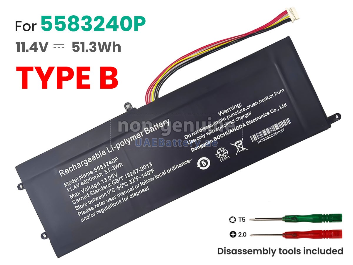 تتوافق البطارية Cooyes 5583240P المستبدلة مع مواصفات الشركة المصنعة الأصلية ومتوافقة مع جهاز Cooyes الخاص بك بنسبة١٠٠٪، ويمكن أن تنافس أو تتجاوز بطارية 5583240P الأصلية في الأداء وتجرية الإستخدام.