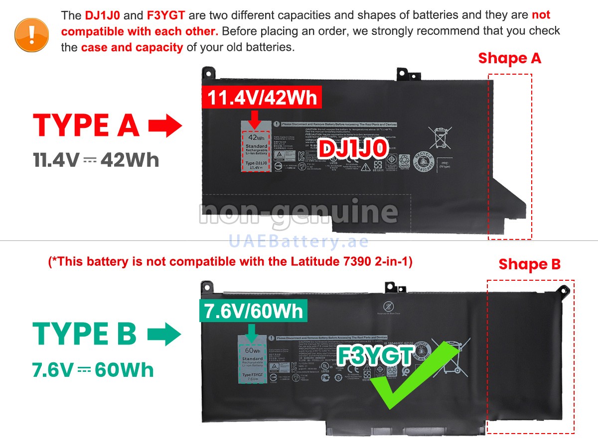 Before placing an order please ensure your old originanl battery is 7.6V 60Wh(4 cell). This battery is not compatible with the voltage 11.4V. 4 خلايا60Wh Dell 0F3YGT