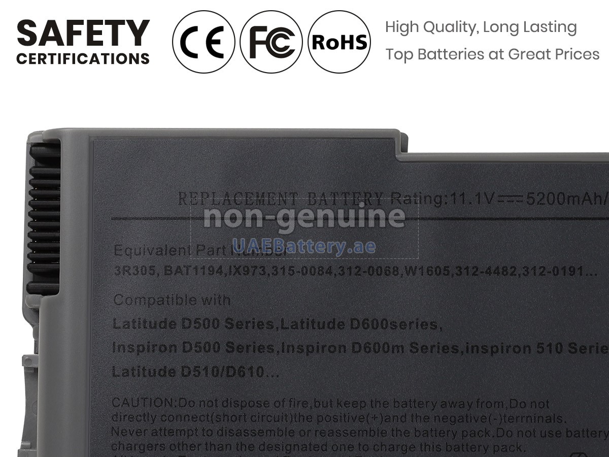 اجتازت كل بطارية Dell Inspiron 600M مستبدلة سلسلة من شهادات السلامة مثل ECAS، CE، UL والخ، وبالإضافة إلى ذلك، يلزم أن تخضع لسلسلة من الإختبارات الصارمة قبل خروجها من المصنع لحماية استخدامكم الآمن!