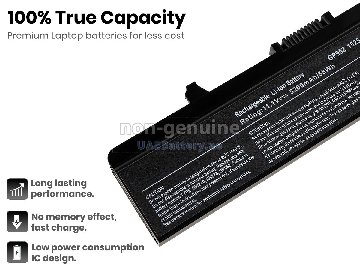 تتوافق البطارية Dell J399N المستبدلة مع مواصفات الشركة المصنعة الأصلية ومتوافقة مع جهاز Dell الخاص بك بنسبة١٠٠٪، ويمكن أن تنافس أو تتجاوز بطارية J399N الأصلية في الأداء وتجرية الإستخدام.