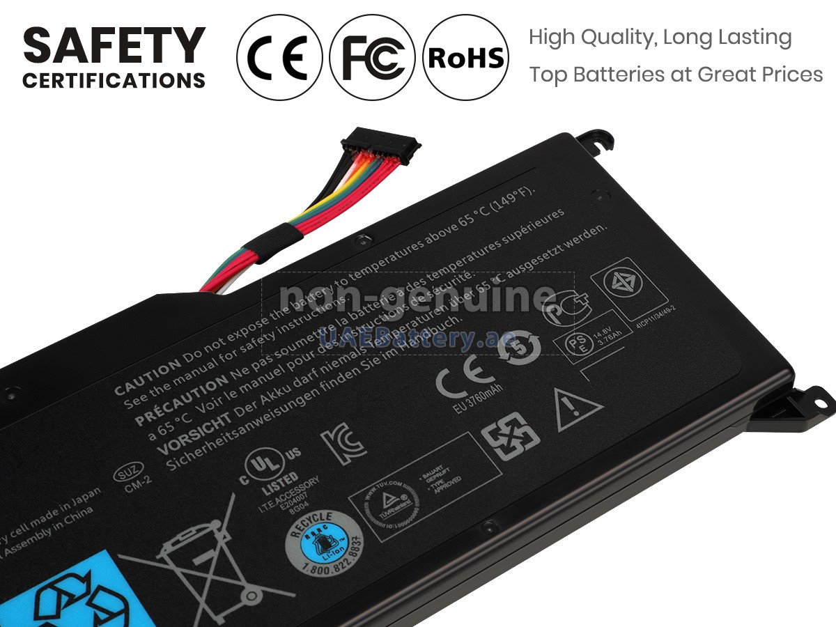 اجتازت كل بطارية Dell P24G مستبدلة سلسلة من شهادات السلامة مثل ECAS، CE، UL والخ، وبالإضافة إلى ذلك، يلزم أن تخضع لسلسلة من الإختبارات الصارمة قبل خروجها من المصنع لحماية استخدامكم الآمن!