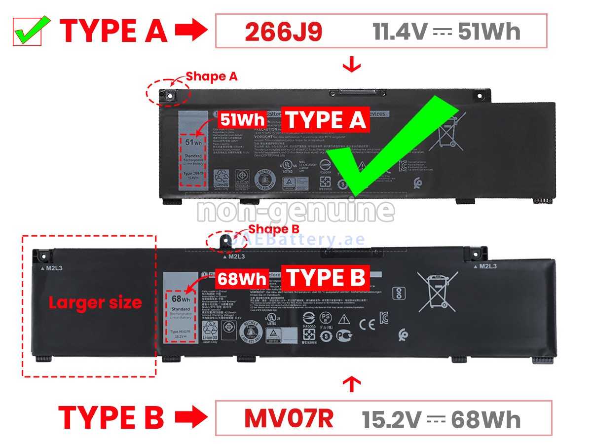 2قم بمقارنة الجهد والسعة للبطارية مع بطارية Dell P89F004، وتحقق من أن واجهة البطارية وشكلها هما نفس الصور الموجودة على موقعنا.