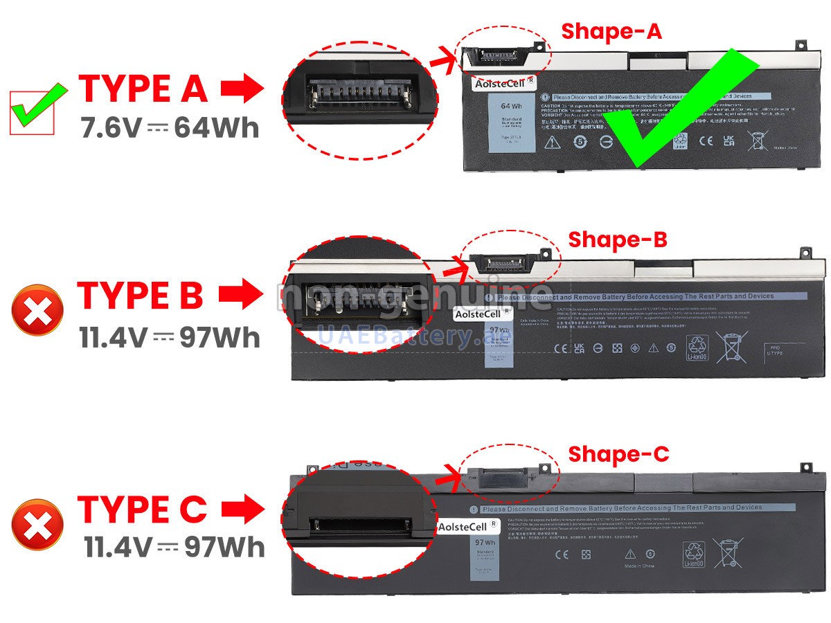 2قم بمقارنة الجهد والسعة للبطارية مع بطارية Dell Precision 7540، وتحقق من أن واجهة البطارية وشكلها هما نفس الصور الموجودة على موقعنا.