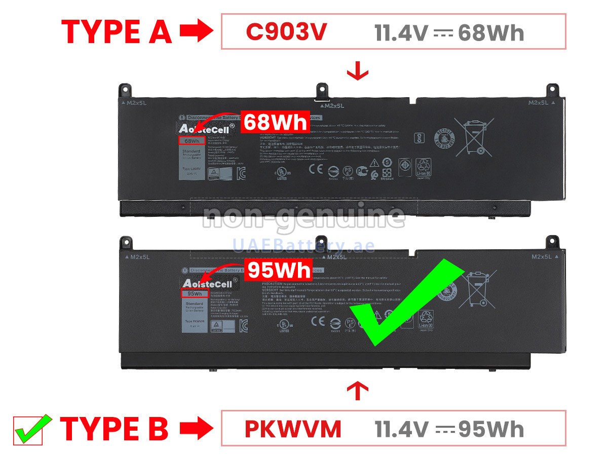 2قم بمقارنة الجهد والسعة للبطارية مع بطارية Dell Precision 7750، وتحقق من أن واجهة البطارية وشكلها هما نفس الصور الموجودة على موقعنا.