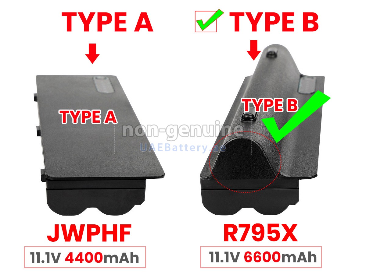 2قم بمقارنة الجهد والسعة للبطارية مع بطارية Dell XPS L701X 3D، وتحقق من أن واجهة البطارية وشكلها هما نفس الصور الموجودة على موقعنا.