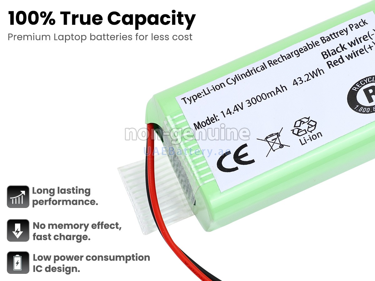 جواب: جميع البطاريات التي تباع على UAEBattery هي بطاريات مستبدل لـOEM. ويستخدم خلايا البطارية والرقائق الذكية من العلامة التجارية الأصلية، ويمكن أن تنافس أو تتجاوز البطارية الأصلية في الأداء وتجرية الإستخدام. وهكذا يتم التخلص من قسط العلامة التجارية ولا تتأثر الجودة. في الواقع، يتم أيضا عملية التجميع لبطارية ROBOVAC 15C MAX الأصلية باستخدام ملحقات من الطرف الثالث المختلفة، وقامت بتثبيت علامتها التجارية الخاصة بها على البطارية قبل البيع فقط. ففي UAEBattery يمكنكم شراء منتجات عالية الجودة بأسعار معقولة!
