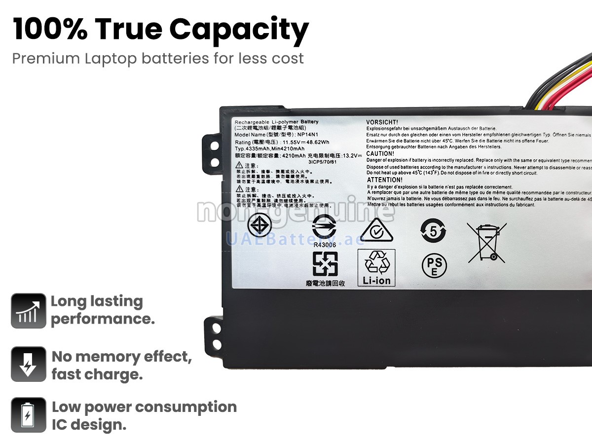 جواب: جميع البطاريات التي تباع على UAEBattery هي بطاريات مستبدل لـOEM. ويستخدم خلايا البطارية والرقائق الذكية من العلامة التجارية الأصلية، ويمكن أن تنافس أو تتجاوز البطارية الأصلية في الأداء وتجرية الإستخدام. وهكذا يتم التخلص من قسط العلامة التجارية ولا تتأثر الجودة. في الواقع، يتم أيضا عملية التجميع لبطارية NP14N1 الأصلية باستخدام ملحقات من الطرف الثالث المختلفة، وقامت بتثبيت علامتها التجارية الخاصة بها على البطارية قبل البيع فقط. ففي UAEBattery يمكنكم شراء منتجات عالية الجودة بأسعار معقولة!