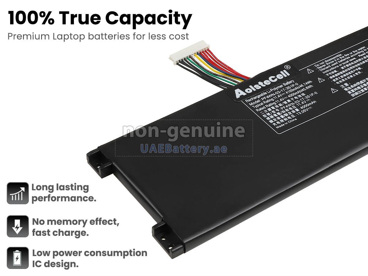 جواب: جميع البطاريات التي تباع على UAEBattery هي بطاريات مستبدل لـOEM. ويستخدم خلايا البطارية والرقائق الذكية من العلامة التجارية الأصلية، ويمكن أن تنافس أو تتجاوز البطارية الأصلية في الأداء وتجرية الإستخدام. وهكذا يتم التخلص من قسط العلامة التجارية ولا تتأثر الجودة. في الواقع، يتم أيضا عملية التجميع لبطارية PF4WN-03-17-3S1P-0 الأصلية باستخدام ملحقات من الطرف الثالث المختلفة، وقامت بتثبيت علامتها التجارية الخاصة بها على البطارية قبل البيع فقط. ففي UAEBattery يمكنكم شراء منتجات عالية الجودة بأسعار معقولة!