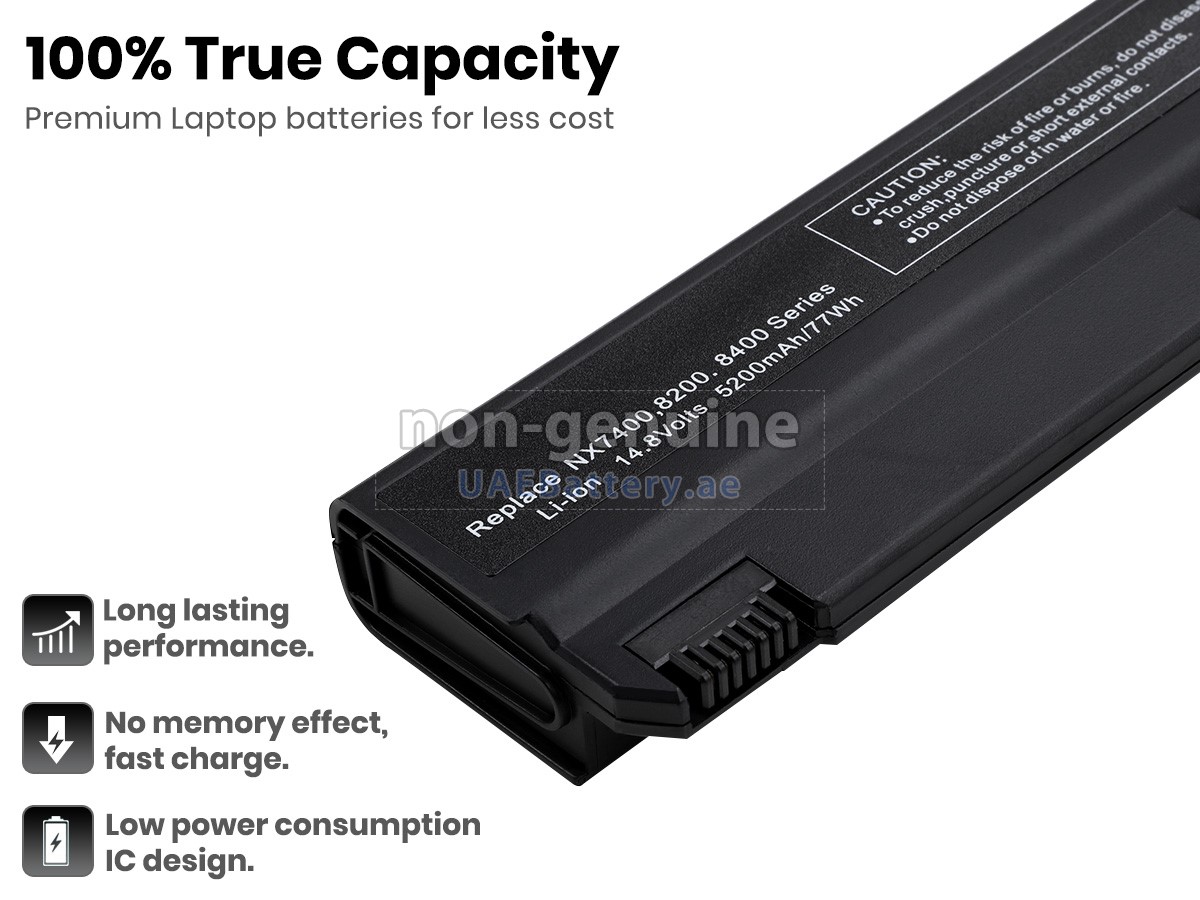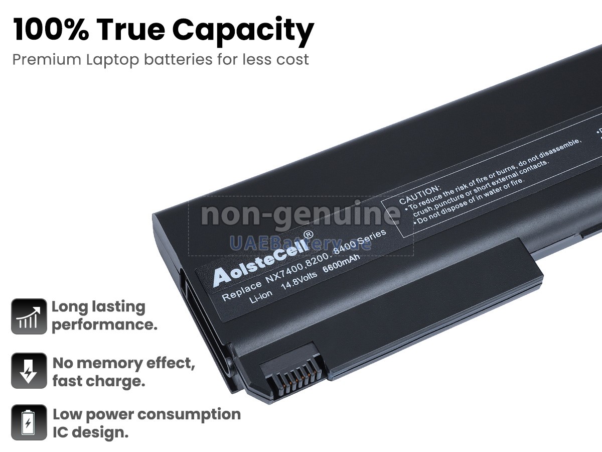 جواب: جميع البطاريات التي تباع على UAEBattery هي بطاريات مستبدل لـOEM. ويستخدم خلايا البطارية والرقائق الذكية من العلامة التجارية الأصلية، ويمكن أن تنافس أو تتجاوز البطارية الأصلية في الأداء وتجرية الإستخدام. وهكذا يتم التخلص من قسط العلامة التجارية ولا تتأثر الجودة. في الواقع، يتم أيضا عملية التجميع لبطارية Business Notebook NC8210 الأصلية باستخدام ملحقات من الطرف الثالث المختلفة، وقامت بتثبيت علامتها التجارية الخاصة بها على البطارية قبل البيع فقط. ففي UAEBattery يمكنكم شراء منتجات عالية الجودة بأسعار معقولة!
