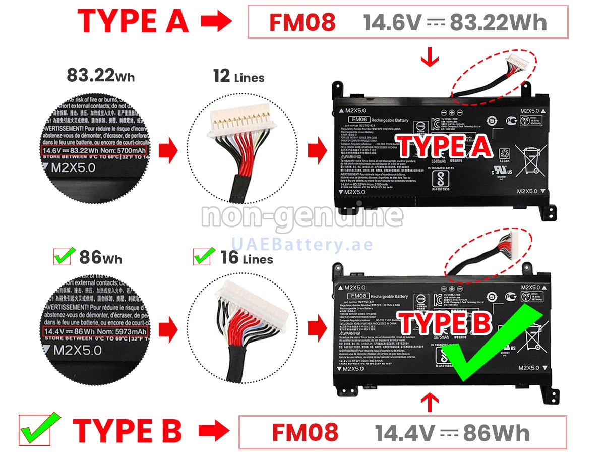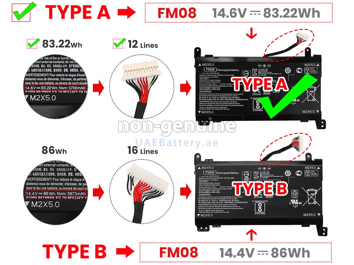 This battery's connector is 12 lines.If your old battery part number is 922976-855 and the capacity of the battery is 82Wh/83.22Wh and AC Adapter is 135W/150W, please order this 12-lines battery.