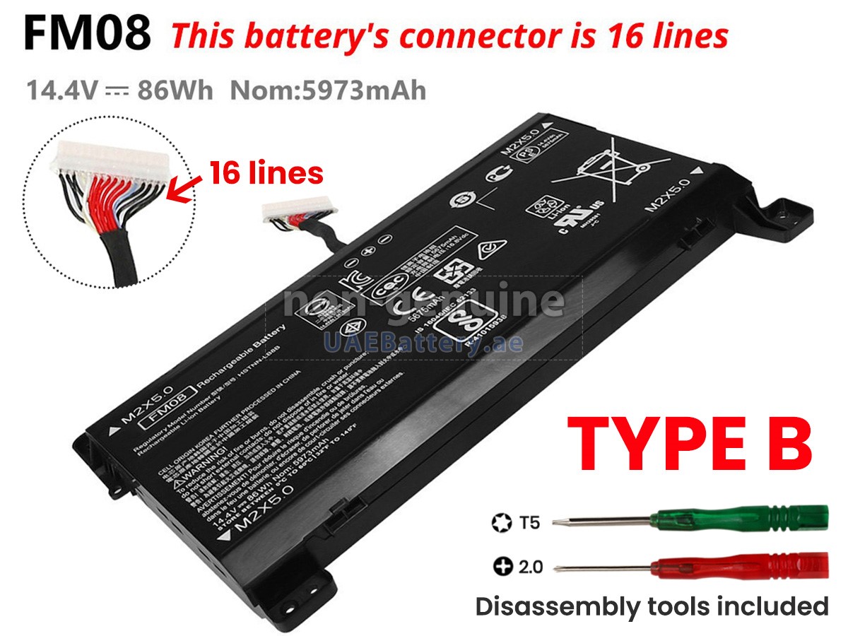 This battery's connector is 16 lines.If your old battery part number is 922977-855 and the capacity of the battery is 86Wh and AC Adapter is 230W, please order this 16-lines battery.