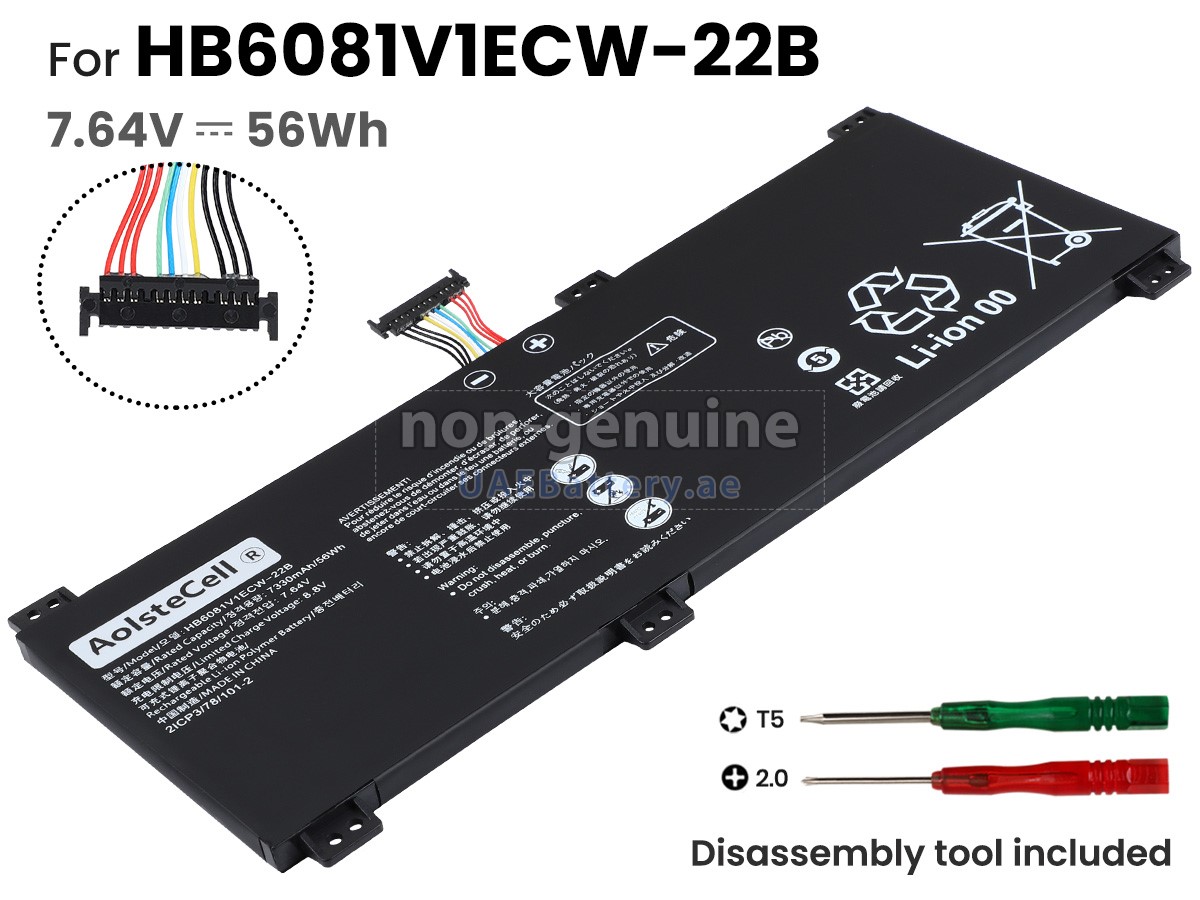 جواب: جميع البطاريات التي تباع على UAEBattery هي بطاريات مستبدل لـOEM. ويستخدم خلايا البطارية والرقائق الذكية من العلامة التجارية الأصلية، ويمكن أن تنافس أو تتجاوز البطارية الأصلية في الأداء وتجرية الإستخدام. وهكذا يتم التخلص من قسط العلامة التجارية ولا تتأثر الجودة. في الواقع، يتم أيضا عملية التجميع لبطارية HB6081V1ECW-22B الأصلية باستخدام ملحقات من الطرف الثالث المختلفة، وقامت بتثبيت علامتها التجارية الخاصة بها على البطارية قبل البيع فقط. ففي UAEBattery يمكنكم شراء منتجات عالية الجودة بأسعار معقولة!
