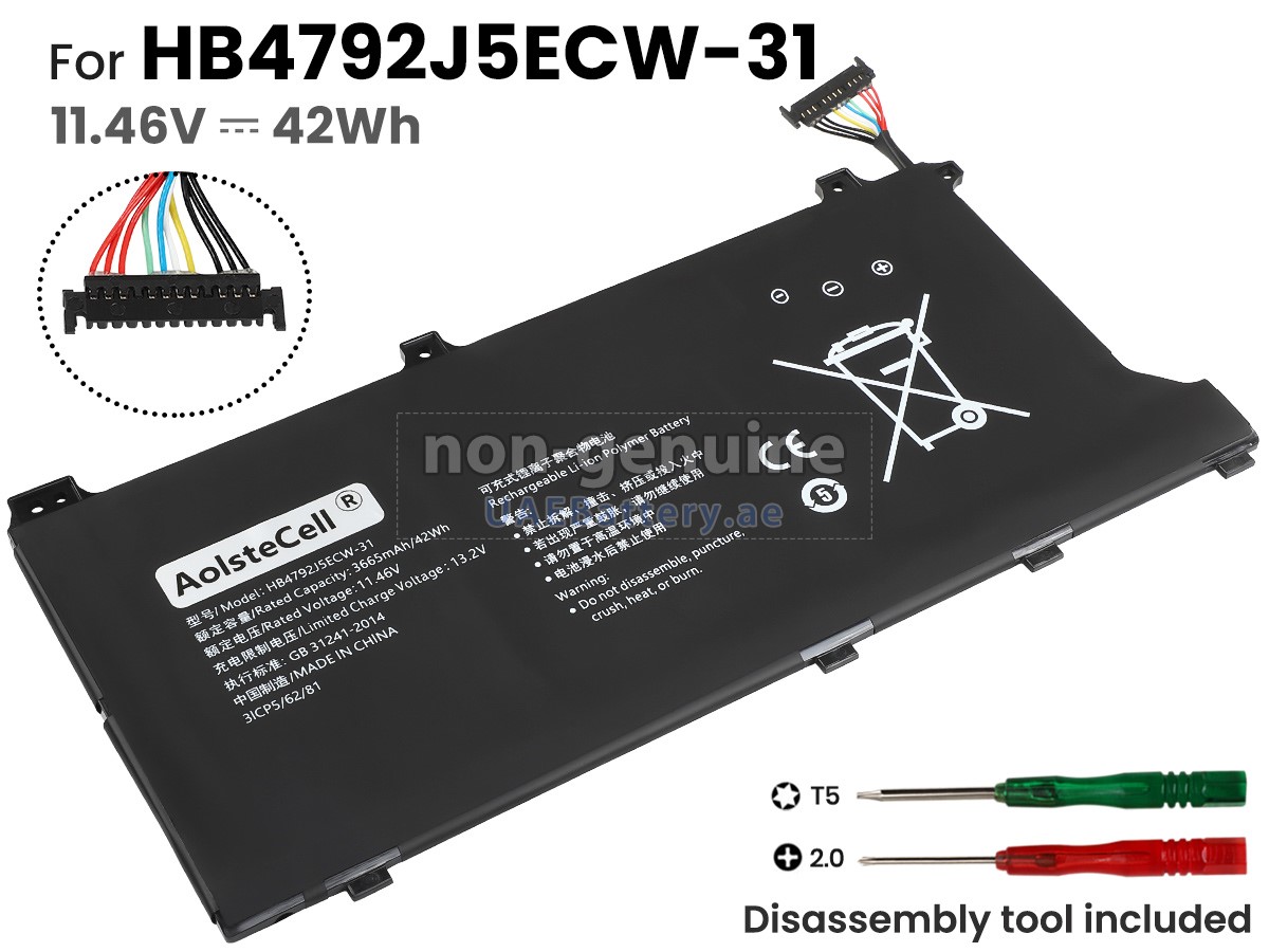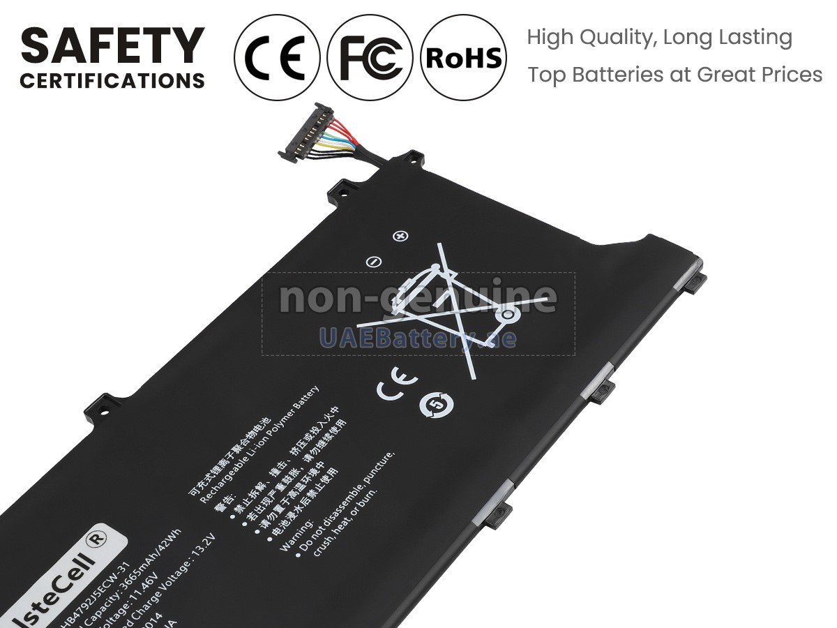 اجتازت كل بطارية Huawei MAGICBOOK X 15 Series مستبدلة سلسلة من شهادات السلامة مثل ECAS، CE، UL والخ، وبالإضافة إلى ذلك، يلزم أن تخضع لسلسلة من الإختبارات الصارمة قبل خروجها من المصنع لحماية استخدامكم الآمن!