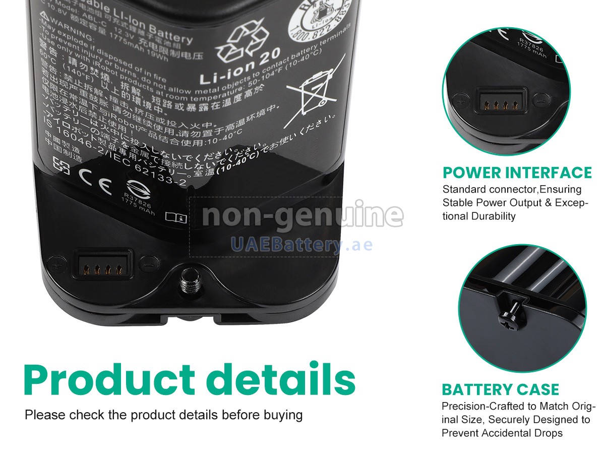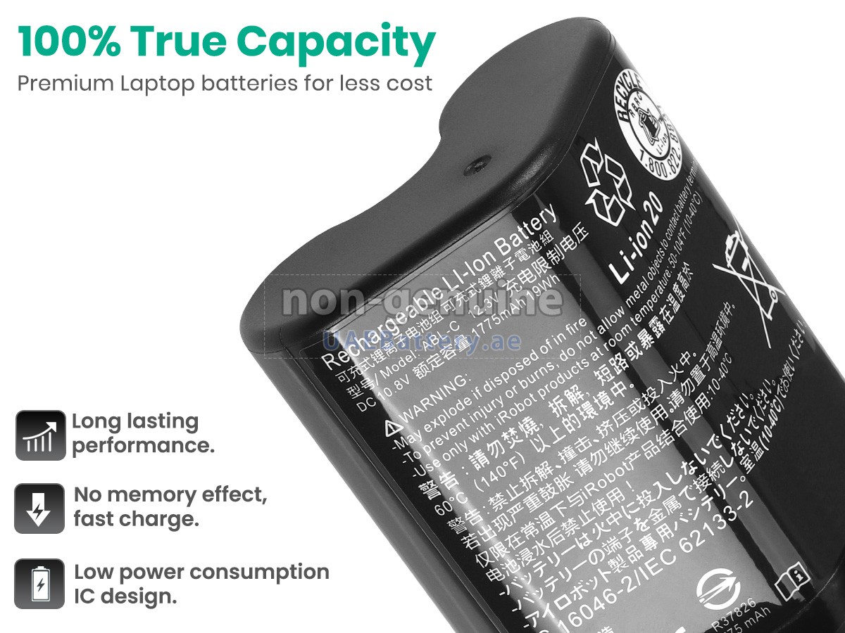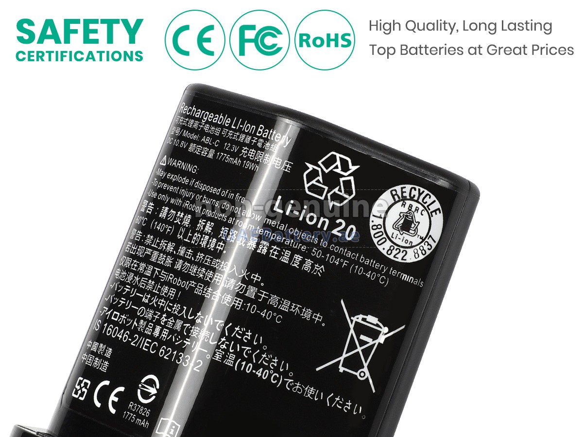 اجتازت كل بطارية Irobot M611020 مستبدلة سلسلة من شهادات السلامة مثل ECAS، CE، UL والخ، وبالإضافة إلى ذلك، يلزم أن تخضع لسلسلة من الإختبارات الصارمة قبل خروجها من المصنع لحماية استخدامكم الآمن!