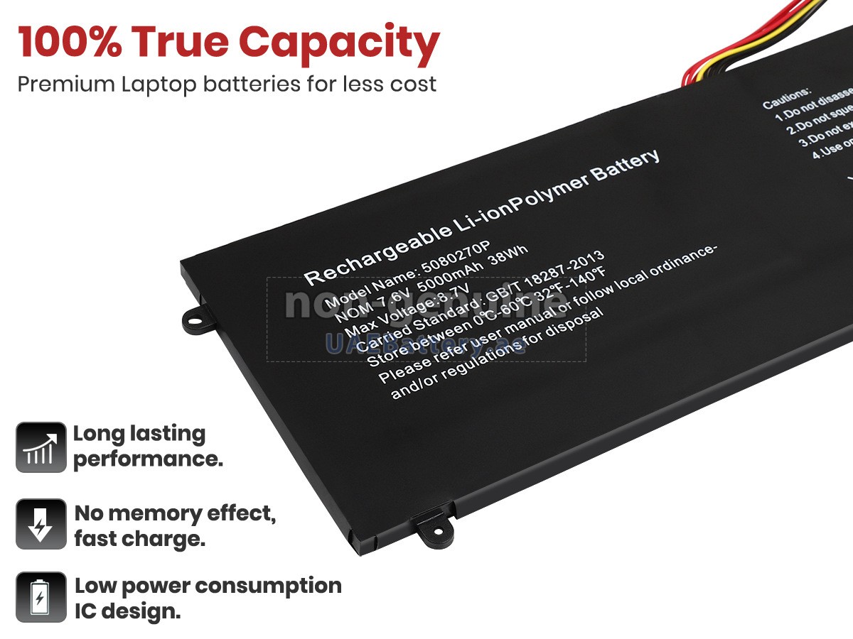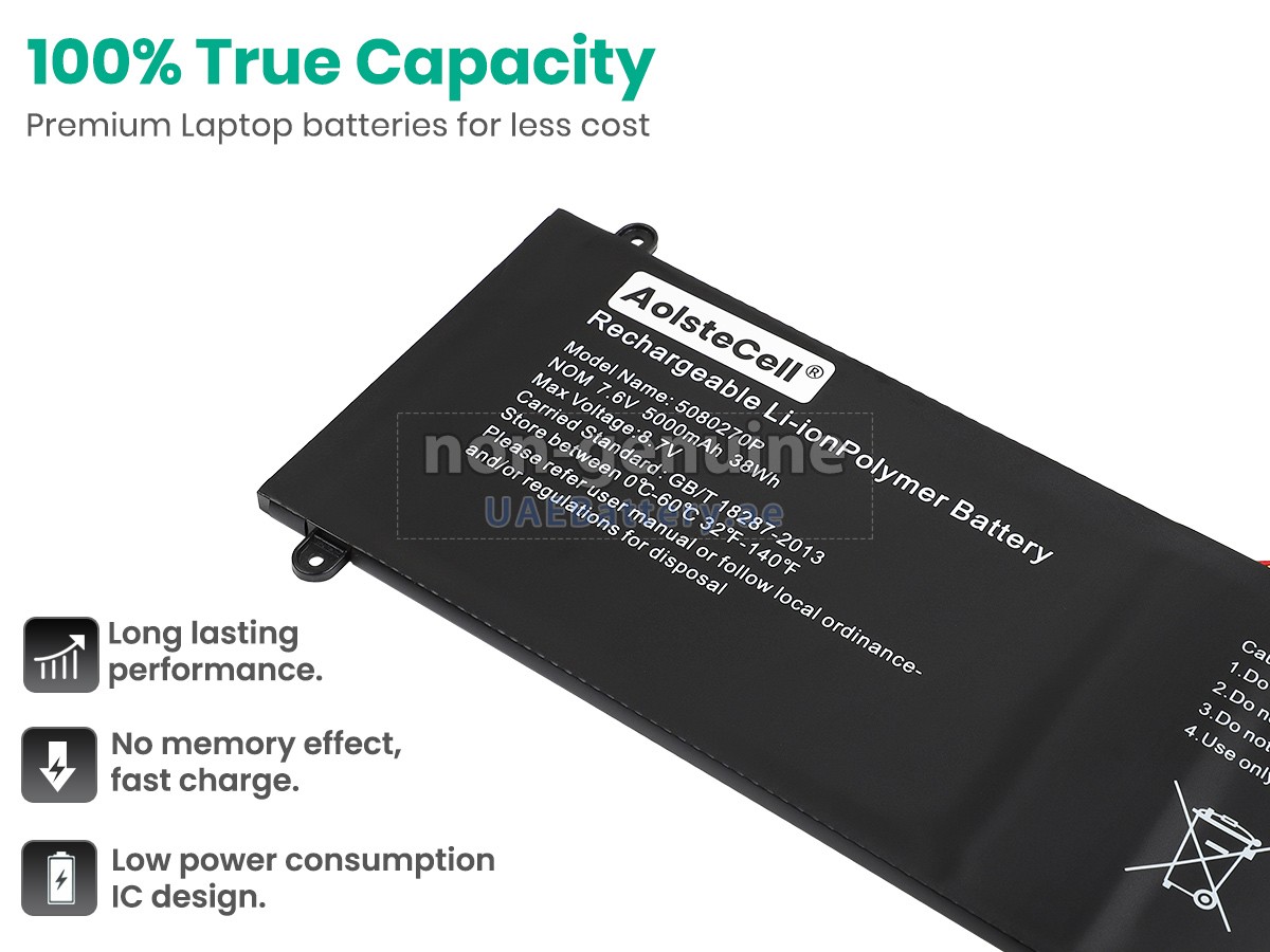جواب: جميع البطاريات التي تباع على UAEBattery هي بطاريات مستبدل لـOEM. ويستخدم خلايا البطارية والرقائق الذكية من العلامة التجارية الأصلية، ويمكن أن تنافس أو تتجاوز البطارية الأصلية في الأداء وتجرية الإستخدام. وهكذا يتم التخلص من قسط العلامة التجارية ولا تتأثر الجودة. في الواقع، يتم أيضا عملية التجميع لبطارية 5080270P الأصلية باستخدام ملحقات من الطرف الثالث المختلفة، وقامت بتثبيت علامتها التجارية الخاصة بها على البطارية قبل البيع فقط. ففي UAEBattery يمكنكم شراء منتجات عالية الجودة بأسعار معقولة!