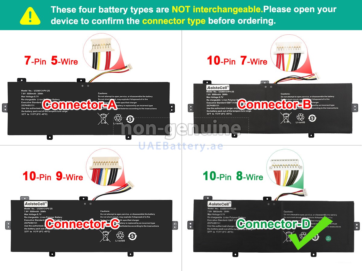 Before placing an order, please open your computer to make sure that your U3285131PV-2S battery looks the same as the picture and is wired with【 10 holes and 7 lines】. 2 خلايا38Wh Jumper SMARTBOOK 141 C5