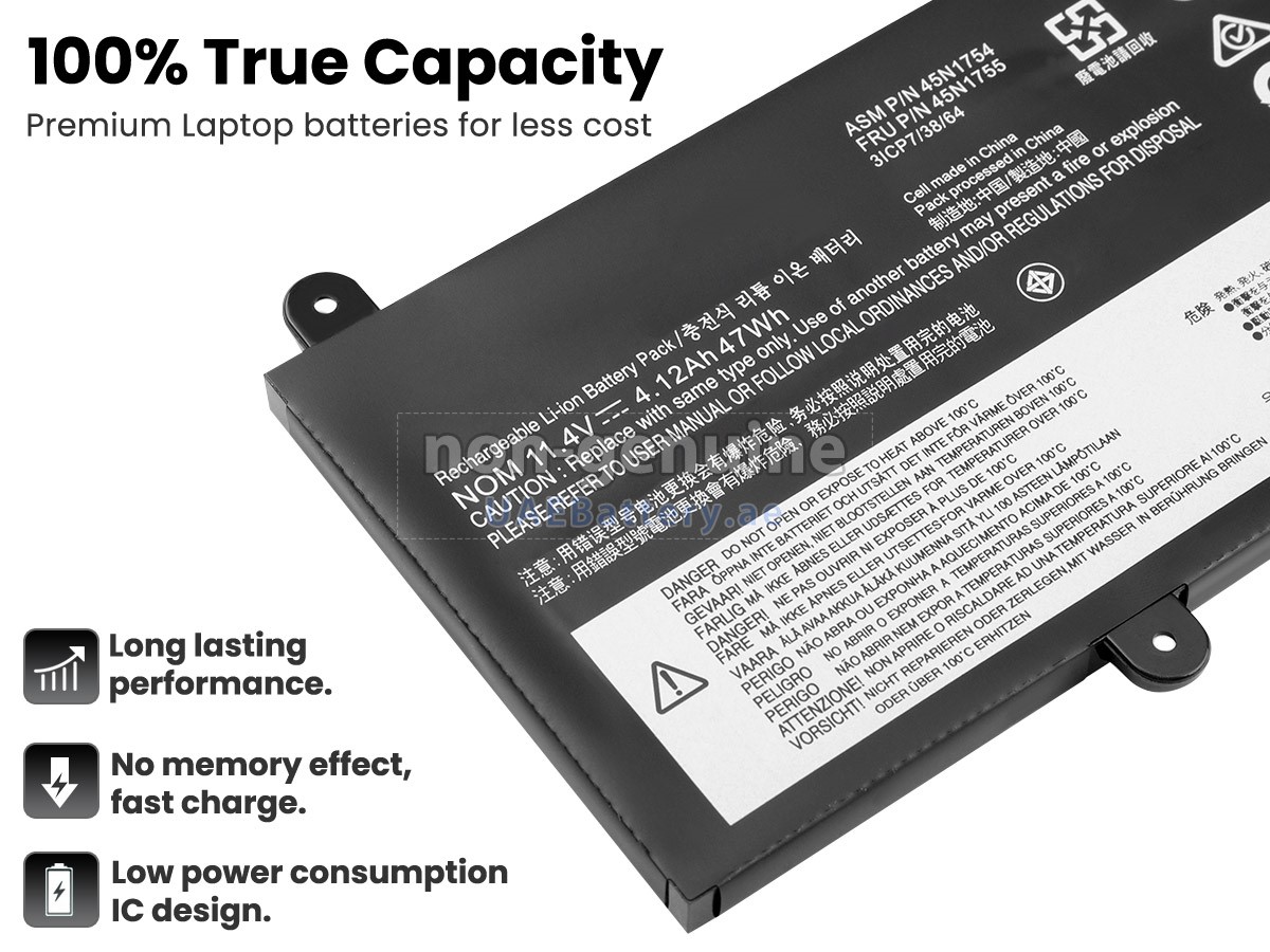 تتوافق البطارية Lenovo 45N1756 المستبدلة مع مواصفات الشركة المصنعة الأصلية ومتوافقة مع جهاز Lenovo الخاص بك بنسبة١٠٠٪، ويمكن أن تنافس أو تتجاوز بطارية 45N1756 الأصلية في الأداء وتجرية الإستخدام.
