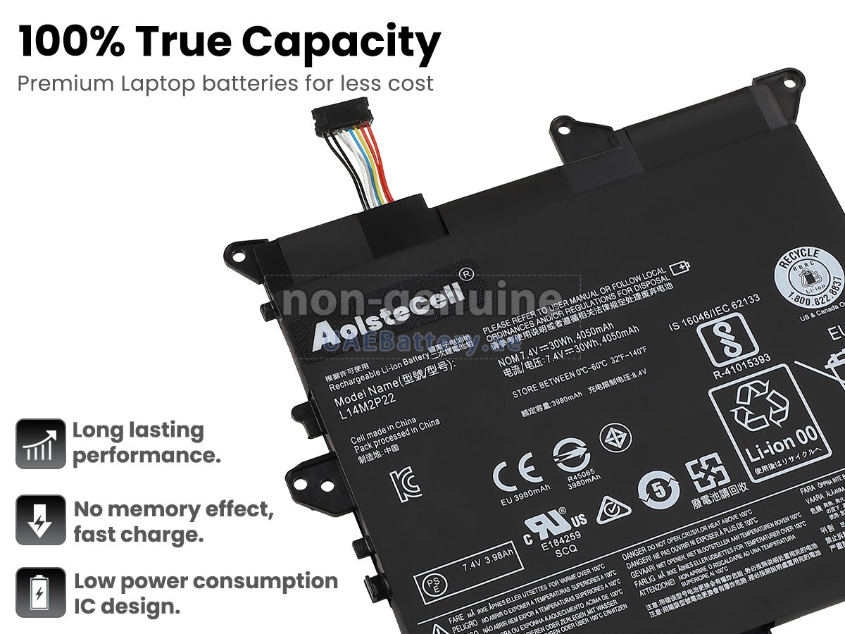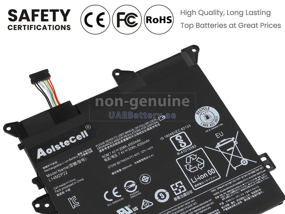 اجتازت كل بطارية Lenovo FLEX 3-1130-80LY مستبدلة سلسلة من شهادات السلامة مثل ECAS، CE، UL والخ، وبالإضافة إلى ذلك، يلزم أن تخضع لسلسلة من الإختبارات الصارمة قبل خروجها من المصنع لحماية استخدامكم الآمن!