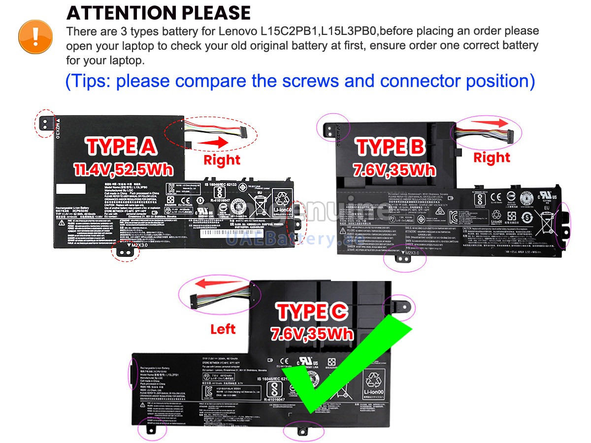 Before placing an order, please open your laptop to check your old battery at first,ensure the screws and connector position is same to our battery. 2 خلايا35Wh Lenovo FLEX 5-1470-80XA
