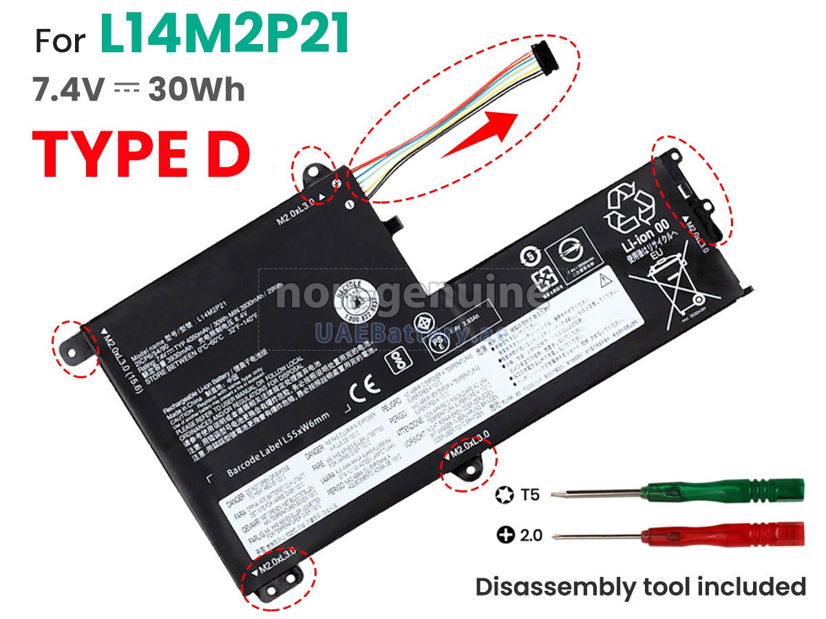اجتازت كل بطارية Lenovo IdeaPad 330S-14IKB-81F400C7GE مستبدلة سلسلة من شهادات السلامة مثل ECAS، CE، UL والخ، وبالإضافة إلى ذلك، يلزم أن تخضع لسلسلة من الإختبارات الصارمة قبل خروجها من المصنع لحماية استخدامكم الآمن!