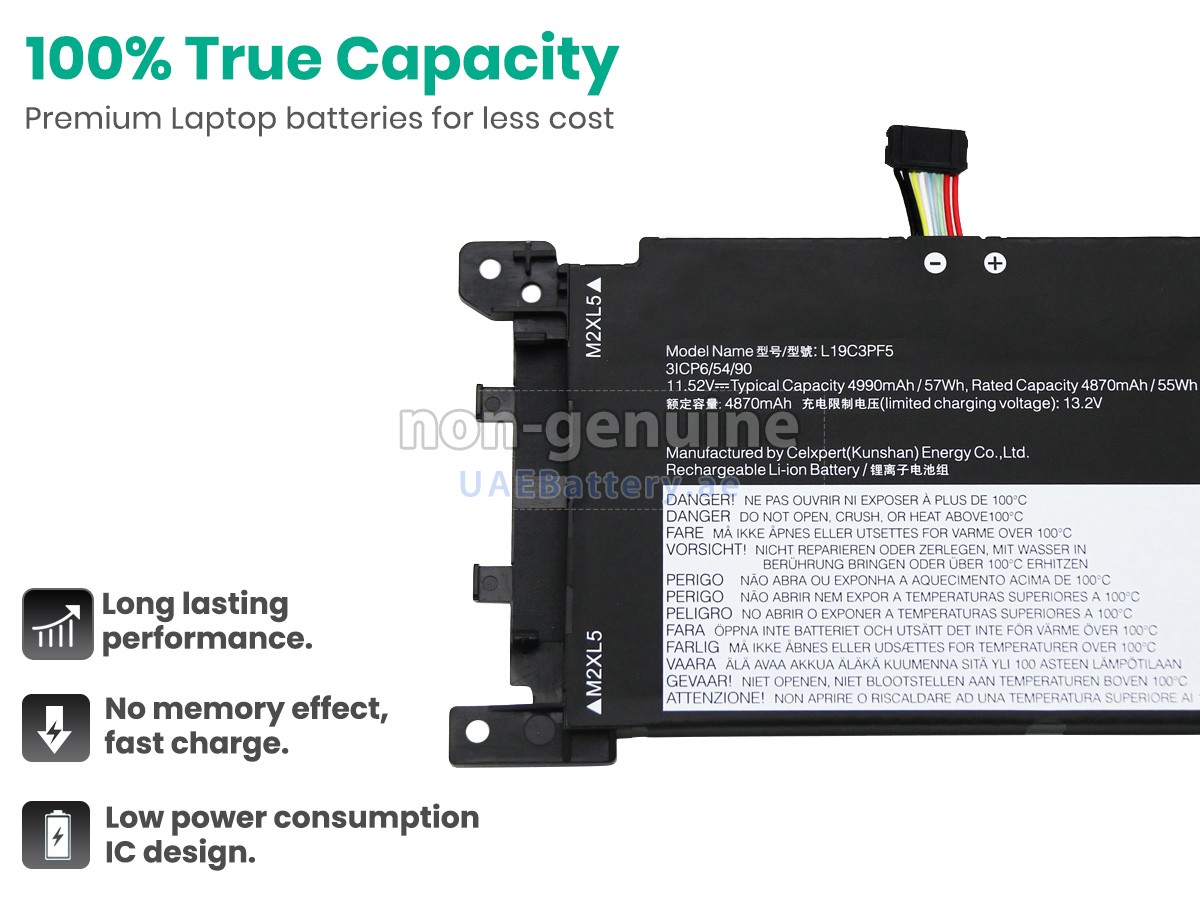 اجتازت كل بطارية Lenovo IdeaPad 5-15ARE05-81YQ00J6RA مستبدلة سلسلة من شهادات السلامة مثل ECAS، CE، UL والخ، وبالإضافة إلى ذلك، يلزم أن تخضع لسلسلة من الإختبارات الصارمة قبل خروجها من المصنع لحماية استخدامكم الآمن!