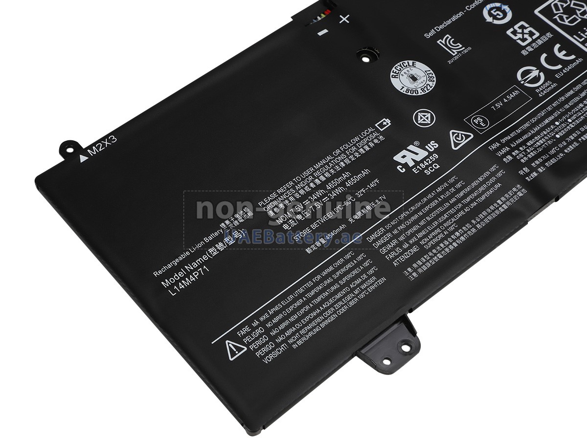 اجتازت كل بطارية Lenovo L14L4P72(2ICP4/49/100-2) مستبدلة سلسلة من شهادات السلامة مثل ECAS، CE، UL والخ، وبالإضافة إلى ذلك، يلزم أن تخضع لسلسلة من الإختبارات الصارمة قبل خروجها من المصنع لحماية استخدامكم الآمن!