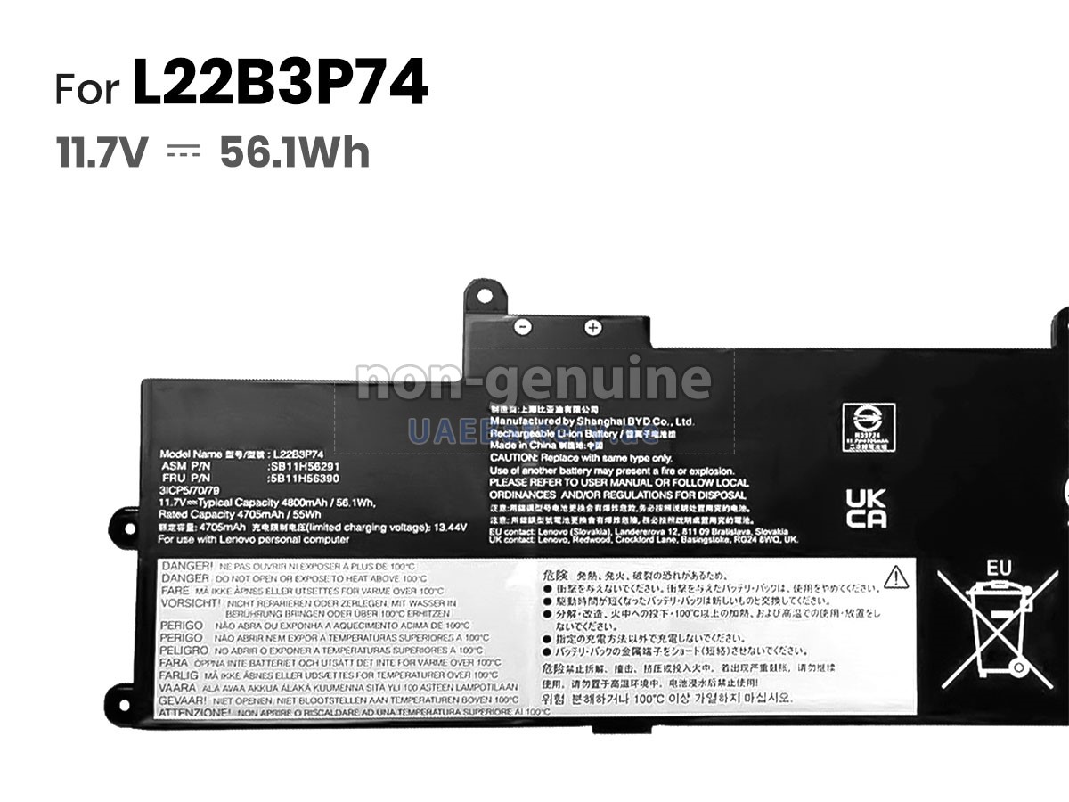 اجتازت كل بطارية Lenovo L22C3P74 مستبدلة سلسلة من شهادات السلامة مثل ECAS، CE، UL والخ، وبالإضافة إلى ذلك، يلزم أن تخضع لسلسلة من الإختبارات الصارمة قبل خروجها من المصنع لحماية استخدامكم الآمن!