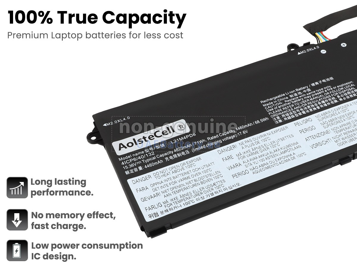 جواب: جميع البطاريات التي تباع على UAEBattery هي بطاريات مستبدل لـOEM. ويستخدم خلايا البطارية والرقائق الذكية من العلامة التجارية الأصلية، ويمكن أن تنافس أو تتجاوز البطارية الأصلية في الأداء وتجرية الإستخدام. وهكذا يتم التخلص من قسط العلامة التجارية ولا تتأثر الجودة. في الواقع، يتم أيضا عملية التجميع لبطارية THINKBOOK 16 G4+ IAP 21CY006QML الأصلية باستخدام ملحقات من الطرف الثالث المختلفة، وقامت بتثبيت علامتها التجارية الخاصة بها على البطارية قبل البيع فقط. ففي UAEBattery يمكنكم شراء منتجات عالية الجودة بأسعار معقولة!