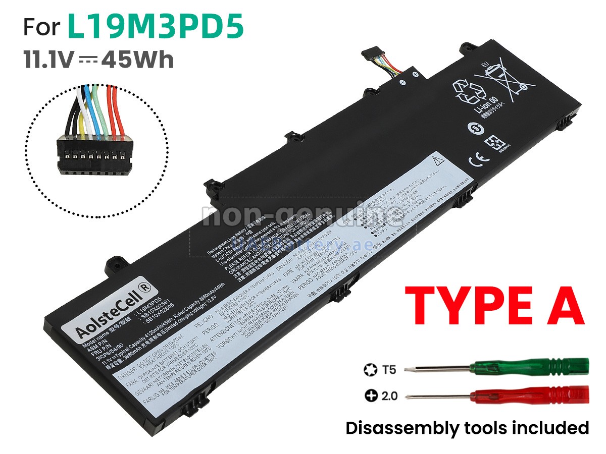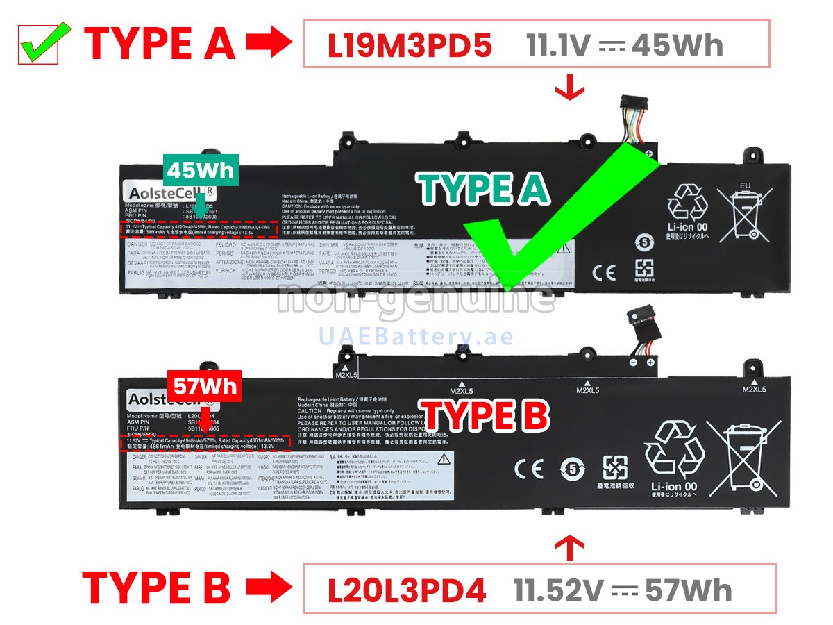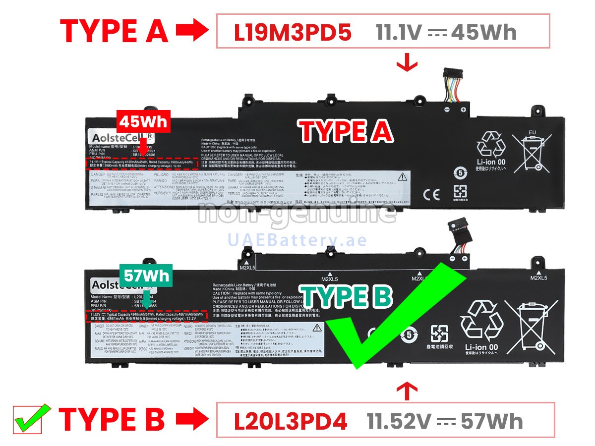 2قم بمقارنة الجهد والسعة للبطارية مع بطارية Lenovo ThinkPad E15 GEN 3-20YG007XAD، وتحقق من أن واجهة البطارية وشكلها هما نفس الصور الموجودة على موقعنا.