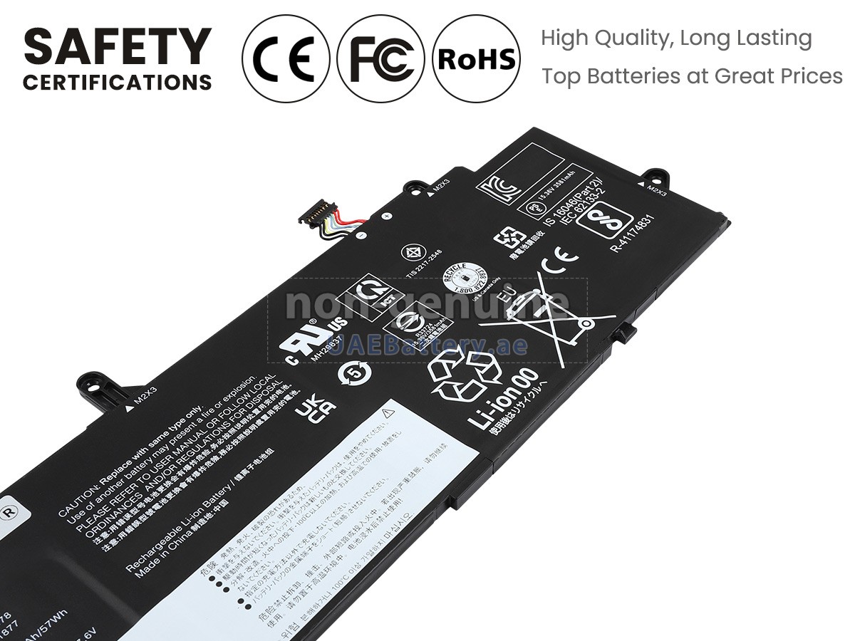 اجتازت كل بطارية Lenovo ThinkPad T14S GEN 4 (INTEL)-21F6005TGR مستبدلة سلسلة من شهادات السلامة مثل ECAS، CE، UL والخ، وبالإضافة إلى ذلك، يلزم أن تخضع لسلسلة من الإختبارات الصارمة قبل خروجها من المصنع لحماية استخدامكم الآمن!